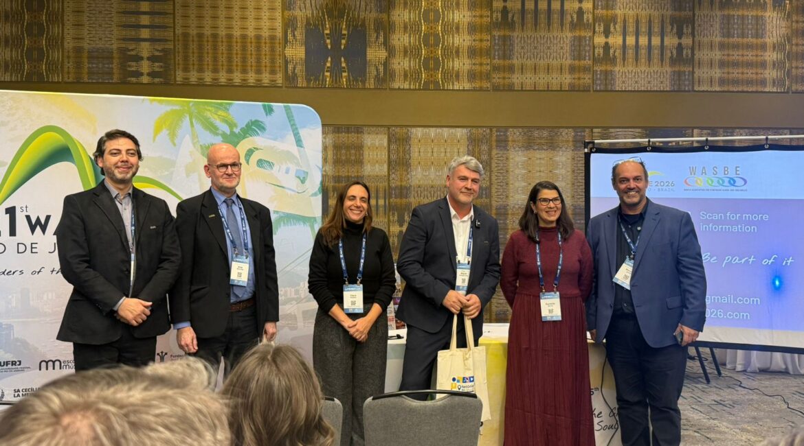 Durante o evento, o estande da WASBE 2026 recebeu visitantes de diversos países interessados em conhecer a programação e os diferenciais da edição brasileira.