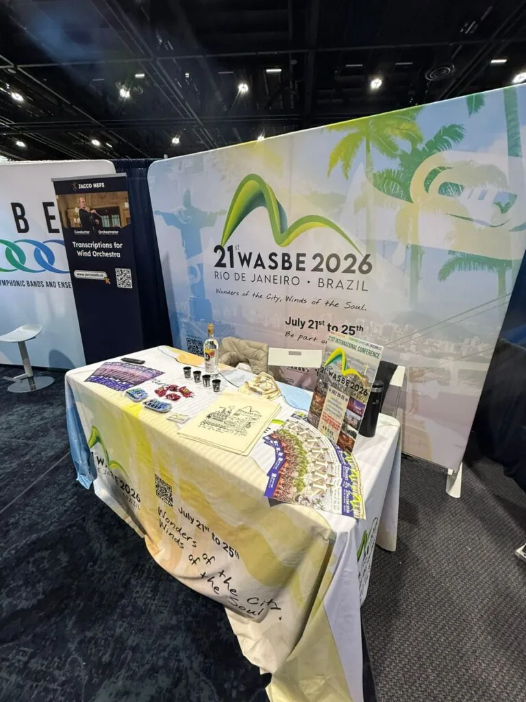 A WASBE 2026 marcou presença na 79ª edição da Midwest Clinic, realizada em dezembro de 2025, em Chicago (EUA), um dos mais relevantes encontros internacionais dedicados a bandas e orquestras sinfônicas de sopros. A participação integrou a estratégia de divulgação e articulação internacional do congresso que será realizado no Rio de Janeiro, entre os dias 21 e 25 de julho de 2026, ampliando a visibilidade do evento no circuito global da música.